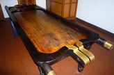 The Dhroni is a special massage table that can make care-based oils. It is slightly hollowed to collect them after use.