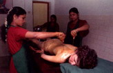 Treatment includes face and head massage with macerated oils and balms, body massages with either oils or powders, with hands or feet, regenerative pills and saturated steam baths of appropriate macerated oils. Herbal baths (macerated hules) are also used.