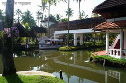 du siècle dernier, empli de bois rares et de tons ambre et pastel. Le bois foncé, comme bien souvent au Kerala est aussi bien présent, et s'harmonise avec la beauté des lieux.